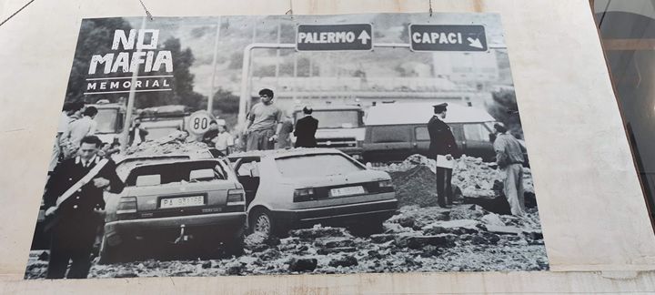 Un mémorial a été construit à la sortie Capaci que vous pouvez voir sans problème sur votre trajet entre l’aéroport et le centre de Palerme.