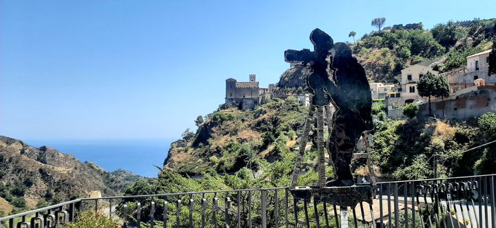 Savoca est un village perché sur une crête, avec son château médiéval en ruine. On y accède par une route relativement sinueuse. Tellement sinueuse, qu’il est très fréquent d’entendre le klaxon des autocars qui s’annoncent !