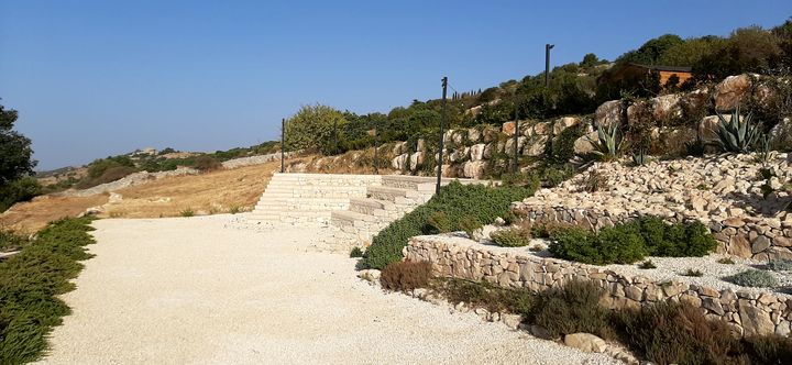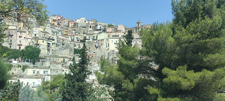 Nous empruntons la petite route en lacets jusqu’en bas de la ville. Etrangement, la ville basse se trouve … sur une colline. 🙂 Tout en descendant, nous admirons la vue sur le promontoire qui abrite la Cathédrale Saint Georges ainsi que le château Ragusa Ibia.