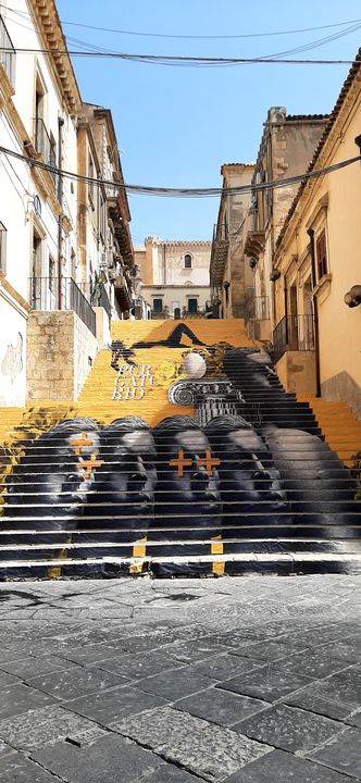 Empruntez ce chemin en direction de la Via Vincenzo Gioberti où se trouve le diocèse de Noto. Au bout de cette route vous aboutirez sur une autre jolie fresque sur un escalier !