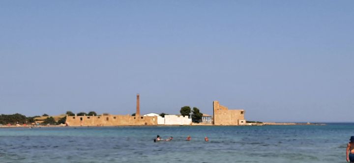 Sur votre gauche les ruines d’une ancienne thonière désaffectée et devant vous une très longue plage avec, au fond, très peu de monde et le plaisir de goûter à des eaux limpides, chaudes et sans courant gênant. Ca, de suite, ça vous rafraîchit les idées et ça vous revigore pour les visites qui suivent. Donc petit arrêt plaisir ! De courte durée car la voiture étant au soleil ….