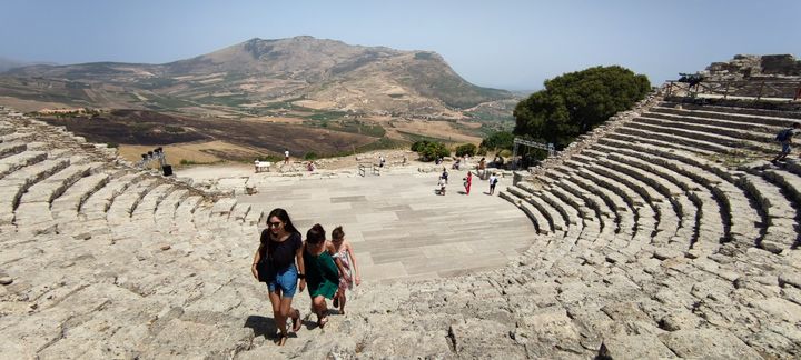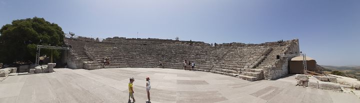 Théâtre grec de 63 mètres de diamètre, il nous rappelle soudain celui de Syracuse. Mais en plus authentique. Arrivée par le dessus du théâtre qui s’étale sous vos pieds tout comme la vallée entière qui déroule jusqu’à Castellamare Del Golfo. Asseyez-vous dès la première marche, respirez, imaginez, laissez le temps remonter … vous y êtes !? Les acteurs sont prêts, les musiciens accordent leurs instruments, le régisseur donne ses dernières consignes. Les 4000 spectateurs grecs aussi. Vous voilà à une représentation antique … enjoy ! 🙂