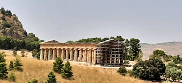 De nature dorique et construit en -425 avant J.C. pour une dimension appréciable de 23×58 m, il n’aurait pas été totalement terminé au vu des nombreuses guerres et conflits avec sa splendide voisine Sélinonte ! Pour autant, le site est magnifique et est composé essentiellement de deux spots principaux : le Temple et le Théâtre (surplombant le Temple depuis une autre colline). Bien entendu, les deux sont à visiter. Une petite route les relie. Un minibus rend la tâche plus facile en plein été. Nous avons donc pris le bus pour monter au Théâtre et nous sommes redescendus en admirant la vallée pour aboutir au Temple.