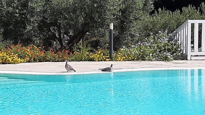 Pour la fin de notre long séjour, nous avions choisi de poser nos valises à la Casale la Macina Residence. Situé dans un grand jardin, le petit village de vacances propose des logements indépendants, de chouettes maisonnettes bien aménagées … La piscine était d’un grand secours pour les humains et quelques autres visiteurs autant accablés que nous par la chaleur 🌞
