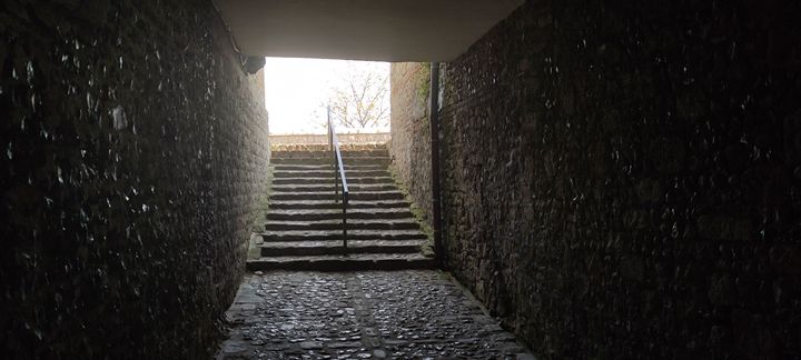 Après quelques centaines de mètres encore, nous parvenons à la porte haute dite Porte Guillaume le Conquérant ou encore Porte Jeanne d’Arc. Cette dernière, capturée, serait passée par cette porte pour aller en captivité.