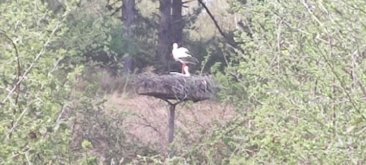 Nous terminons la boucle en allant admirer la zone des cigognes. Vous ne pourrez pas vous tromper, au loin on les entend claquetter ! D’un abri, on les distingue à une cinquantaine de mètres, perchées dans les arbres, partageant le territoire avec des aigrettes.