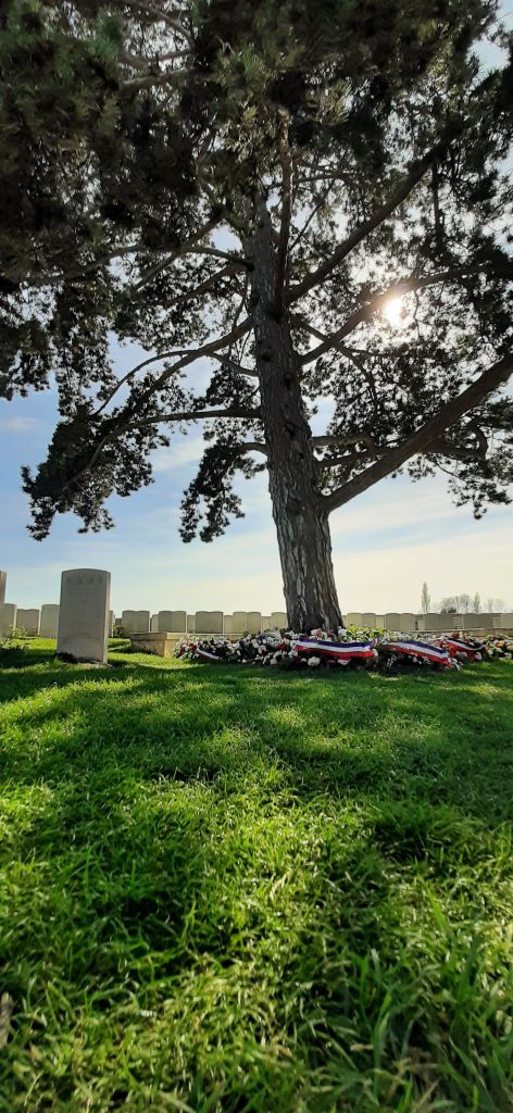 A Noyelles, vous trouverez rapidement le chemin vers le tout petit cimetière chinois. Nous parlons ici de centaines (+- 840) de « volontaires » chinois (sans jeu de mot :)) qui ont été recrutés par l’armée britannique lors de la première guerre mondiale pour faire la manutention à l’arrière du front en général même si certains connurent le feu. Terrassements, tranchées, ramassage de corps sur le champs de bataille, déminage, blanchisserie, etc … Ils furent utilisés, et surtout usés, à ces tâches ingrates. Beaucoup sont morts de la grippe espagnole.